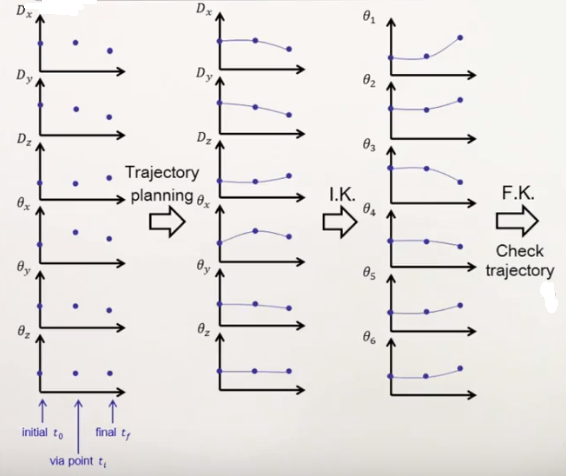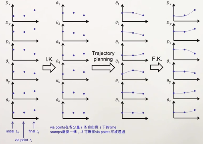 比如已知init point,2个via points,1个final point,Joint Space的方法,只须做4次IK。